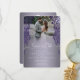 This elegant Save the Date card showcases a custom photo framed with a decorative damask frame in rich tones of purple, lavender purple, greyish purple, and silvery purple. The refined background blends these shades into a sophisticated design, creating a stylish and decorated look. The graceful typography and ornamental accents enhance the charm, making this an ideal choice for couples who want a timeless and elegant way to announce their wedding date.