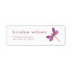 NewParkLane - Simple but elegant return Address Labels, featuring a purple and pink watercolor butterfly, with text templates for your name and address in a modern sophisticated typography.