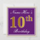 Elegant, Purple, Faux Gold 10th Birthday + Name Invitation
