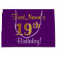 Elegant, Purple, Faux Gold 19th Birthday + Name Large Gift Bag