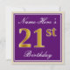 Elegant, Purple, Faux Gold 21st Birthday + Name Invitation