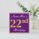 Elegant, Purple, Faux Gold 22nd Birthday + Name Invitation