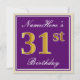 Elegant, Purple, Faux Gold 31st Birthday + Name Invitation