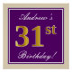 Elegant, Purple, Faux Gold 31st Birthday + Name Poster