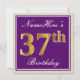Elegant, Purple, Faux Gold 37th Birthday + Name Invitation