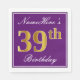 Elegant Purple, Faux Gold 39th Birthday + Name Napkins