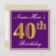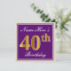 Elegant, Purple, Faux Gold 40th Birthday + Name Invitation