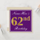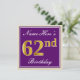 Elegant, Purple, Faux Gold 62nd Birthday + Name Invitation