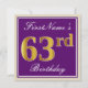 Elegant, Purple, Faux Gold 63rd Birthday + Name Invitation
