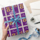 This simple and elegant wrapping paper design features a personalized message like "Name-Here’s 83rd Birthday" (with the "83rd" having a faux/imitation gold-like coloring look) within a purple-colored square area featuring a simple border outline. The name is in an elegant white-colored script-like text, and can be customized. Wrapping paper like this could perhaps be used when wrapping birthday gifts for somebody who is celebrating their eighty third birthday. [~Z0000220]