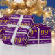 This simple and elegant wrapping paper design features a personalized message like "ANameHere’s 89th Birthday" (with the "89th" having a faux/imitation gold-like coloring look) within a purple-colored square area featuring a simple border outline. The name is in an elegant white-colored script-like text, and can be customized. Wrapping paper like this could perhaps be used when wrapping birthday gifts for somebody who is celebrating their eighty ninth birthday. [~Z0000220]