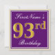 Elegant, Purple, Faux Gold 93rd Birthday + Name Invitation