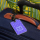 Ornate light purple filigree pattern on elegant personalized luggage tag.