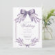 Having your Elegant Purple Floral Bow Wedding Invitation match the theme of your party is a great detail that your guests will appreciate. The thoughtfulness of a consistent party theme is often appreciated and can show your guests that you can host a cohesive event.