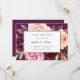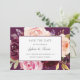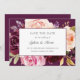Moody floral save the date card featuring watercolor painted roses in shades of plum, peach and pink over a plum background. Your wedding details are in a rectangular white frame which overlaps the flowers. The back has a bouquet of roses in the middle, over the same plum shade. This elegant design is great for a celebration in the fall.