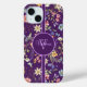 "floral design cover", "purple floral background", "custom name iPhone", "vibrant purple case",