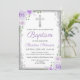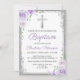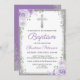 Elegant Purple Floral Silver Glitter Girl Baptism Invitation