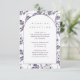 Elegant and chic purple and white floral wedding reception card features a pretty botanical pattern and classic typography. Share your reception venue details to let guests know where the celebration continues! Shop this collection for coordinating wedding invitations.
