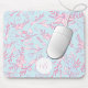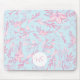 This elegant mouse pad has a floral pattern of purple flowers against a light blue background. Personalize initials.
