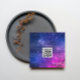 Square business card, adorned with a captivating purple artistic galaxy background. The elegant font, embellished with swashes, adds a touch of sophistication. Customize it with your own QR code easily now .
