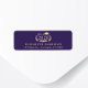 Elegant purple graduation return address label featuring "Class of" and the year in a gold illustration of laurel wreath, a gold grad cap topper and diploma, and the graduate's name and address in classic gold serif typography.