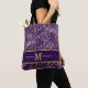 Elegant purple with gold leaves tote bag personalized with your monogram initial and your name.