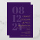 Elegant typography wedding invitation in purple with your wedding date in large numbers down the side of the invitation. Add names and wedding wording in gold foil. Gold foil and dark purple wedding invitation with your names in a large font.