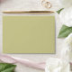 Expectations met; I liked that I had the opportunity to include our address on the back of the envelope. This color matched very well with my save the date. The color was the same as shown above. I had our address labeled on the back of the envelope and the font/printing met my expectations.