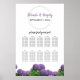 This elegant floral design features purple hydrangeas. The beautiful purple hydrangeas are complimented with their greenery. The bride's and groom's names are color matched to the purple of the hydrangea flower and are encircled with three geometric rings. This is the perfect elegant floral wedding design ideal for any wedding theme. Elegant hydrangea flower wedding seating chart design with modern elements. Matching wedding invitations and other stationery items are also available.