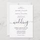 Invite your family and friends to your elegant purple wedding celebration with these elegant purple wedding invitations featuring a modern script font. Matching items available.