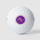 Purple monogram golf balls in beautiful design created with purple, pink, and white design elements on a monogram emblem you can personalize with your name initials to identity your golf balls on the golf course. Designed for ladies or girly golfers.