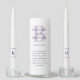 Elegant purple wedding unity candle set highlighting the couple's names and a personalized quote or verse in coordinating typography. The wedding date and monogram initials on each taper candle add a refined touch. Customize all text for a one-of-a-kind wedding ceremony moment.