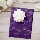This royal purple wedding gift wrap features beautiful white typography on a solid deep violet for an evening ceremony in the winter. Minimalist script and a bold color makes your bridal party wrapping paper pop.