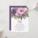 Elegant Purple Pink Floral 90th Birthday Invitation