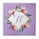 Elegant Purple Pink Floral Flower Monogram Initial Ceramic Tile