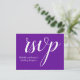 This elegant, respectable RSVP postcard design features the message "rsvp" on the front, along with a customizable occasion name. It also features a customizable RSVP form on the back, along with a customizable address that the completed RSVP cards would be mailed to. RSVP cards like this might be used to find out who will be attending a birthday party, a baby shower, a wedding reception, or some other celebration.