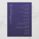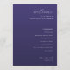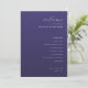 This elegant wedding program features a deep purple background with a clean, modern layout. The design combines script and sans-serif fonts to create an inviting and sophisticated look, perfect for formal weddings. Customizable sections allow you to easily personalize the ceremony details, date, and location. The minimalist approach emphasizes clarity and elegance, making it ideal for couples seeking a refined and understated aesthetic.