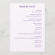 This wedding program features a modern, minimalist design with a deep purple background and crisp white text. The layout is clean and elegant, focusing on typography to highlight the names "Sophia" and "William," which are prominently displayed in bold serif letters with a stylish cursive "and" connecting them. The ceremony details are neatly listed below, ensuring clarity and easy readability, while ample negative space emphasizes simplicity and sophistication. Perfect for couples seeking a formal yet approachable aesthetic, this design captures the joyous occasion of their union.