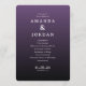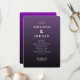 This wedding program features an elegant, minimalist design with a gradient purple background that transitions from deep to dark shades. The layout is vertically oriented and centered, creating a formal and balanced appearance. Clean typography highlights the ceremony details in a clear hierarchy, using bold serif fonts for names and sans-serif fonts for event specifics, conveying a serene and sophisticated mood perfect for a modern wedding celebration.