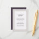 This elegant and minimal wedding guest detail features a beautiful dark purple and gray color palette. The simple text features romantic black calligraphy script typography.