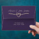 Elevate your wedding stationery with our luxury dark purple 5x7 wedding envelope, designed to exude elegance and modern sophistication. This chic envelope features a romantic gold rope heart on the top flap and a personalized return address, adding a touch of timeless charm. Perfect for elegant, modern, or classic wedding themes, it beautifully complements your invitation suite and leaves a lasting impression on your guests. Personalize it to perfectly match your special day.