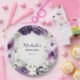 Elegant Purple White Floral Glitter Birthday Name Paper Plates