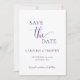 This simple minimalist save-the-date card is perfect for announcing your upcoming wedding. This card features a purple-and-white design with elegant text. Customize text on the front and back of the card with all the details of your special day. #savethedate #ourwedding #minimalistwedding