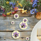 A cute bumblebee gently sits amongst two delicate lavender flowers and green leaves all set against a soft creamy yellow back drop. This sweet nature inspired design brings warmth and charm- perfect for a wedding that celebrates love and the beauty of the outdoors.