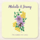 Elegant Purple Yellow Flowers Honeycomb Bee Square Paper Coaster
