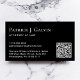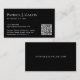 Modern black professional business card with your name in an elegant white serif font and your title and contact information in clean and simple white typography. Input a URL address to create a scannable QR code linked to your website, social media profiles, or any other platform that showcases your work, making it easy for customers and clients to explore your expertise. On the back, customize additional text or leave blank.