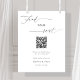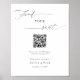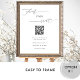 Welcome your guests in style with this elegant QR code sign, designed to link directly to your digital seating chart. Featuring beautiful modern handwritten script calligraphy details, it’s a stylish and practical choice for couples who want a stress-free way to keep seating details up to date—even at the last minute. Simply add your seating plan page URL address, and Zazzle will automatically generate and place your personalized QR code. Be sure to scan the preview to confirm it links correctly before ordering. The 8" x 10" size shown is just an example, as you can choose from a variety of sizes to best suit your display. Printed on premium poster paper, it’s easy to frame or mount onto MDF or foam board. If you’d prefer a ready-to-display foam board, scroll to the “Transfer design to a product” section on this page, browse until you find “Foam Boards". (If it first transfers into a larger size, you can easily resize it on the product page and preview how it will look on a stand.) Please note that while the cart may list the back as “blank,” don't worry about it; the back will actually be white. Part of our "Modern Elegant Wedding & Event Signage" collection, this design can be paired with coordinating pieces for a polished and cohesive look. If you need help, just send me a message—I’ll be glad to assist. Dimensions of sign in demo photo with stand: 18" x 24"
