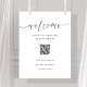 Welcome your guests in style with this elegant QR code sign, designed to link directly to your digital seating chart. Featuring modern handwritten script and clean typography, it’s a stylish and practical choice for couples who want a stress-free way to keep seating details up to date—even at the last minute. Simply add your seating plan page URL address, and Zazzle will automatically generate and place your personalized QR code. Be sure to scan the preview to confirm it links correctly before ordering. The 8" x 10" size shown is just an example, as you can choose from a variety of sizes to best suit your display. Printed on premium poster paper, it’s easy to frame or mount onto MDF or foam board. If you’d prefer a ready-to-display foam board, scroll to the “Transfer design to a product” section on this page, browse until you find “Foam Boards". (If it first transfers into a larger size, you can easily resize it on the product page and preview how it will look on a stand.) Please note that while the cart may list the back as “blank,” don't worry about it; the back will actually be white. Part of our "Modern Elegant Wedding & Event Signage" collection, this design can be paired with coordinating pieces for a polished and cohesive look. If you need help, just send me a message—I’ll be glad to assist. Dimensions of sign in demo photo with stand: 18" x 24"
