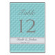 Elegant quilt teal silver wedding table number