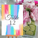 Beautiful rainbow wedding table number sheet with pretty, artistic paint strokes full of bright color. This colorful party reception decor is perfect for an artistic couple or a gay and lesbian reception.